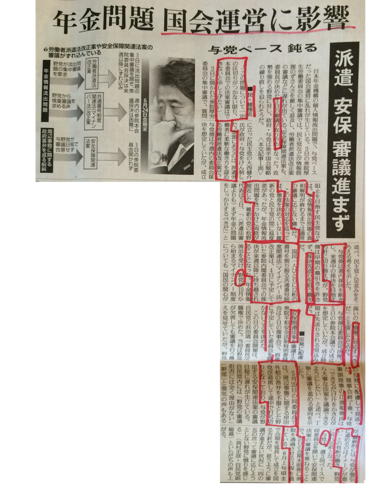 年金情報漏洩問題が国会で追及され、スケジュールが後ろにずれることが報じられている。民主党と維新の党が、足並みをそろえ、共闘体制となっている。